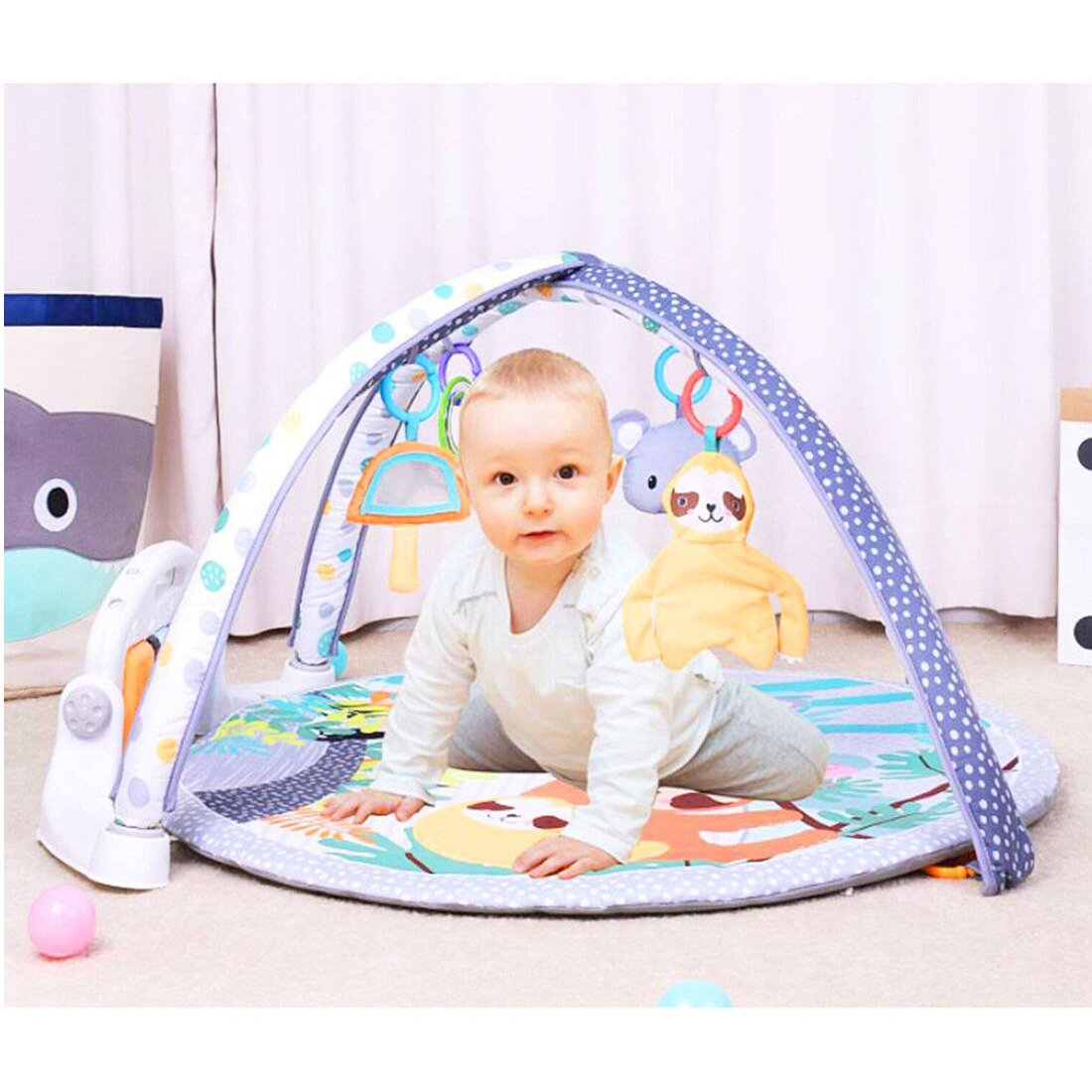Apoya el desarrollo: Los músculos pequeños se ejercitarán mucho mientras su bebé patea, estira, y empuja hacia arriba al tratar de coger o tocar los juguetes colgantes. Además, a medida que los pequeños descubren les generara más curiosidad.