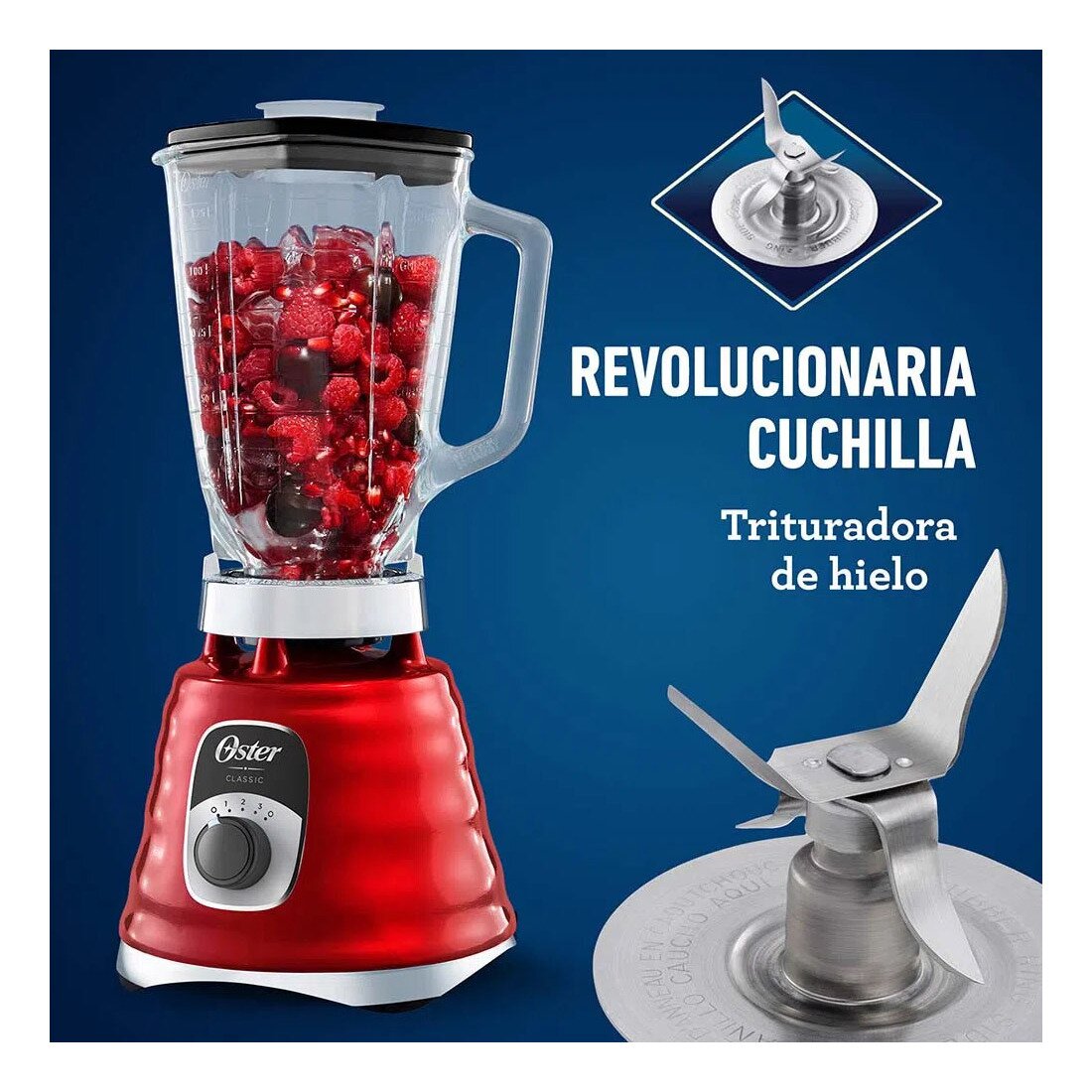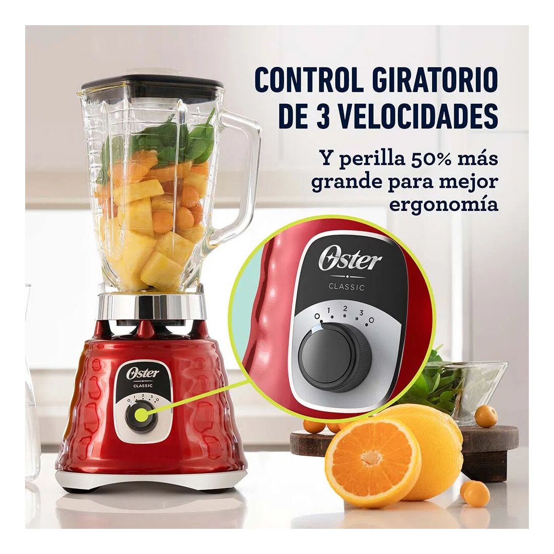 Licuadora Clásica BLST4126R 1.25 LtsLas icónicas licuadoras Oster® son sinónimo de eficiencia y durabilidad. Y ahora, el nuevo diseño moderno de la espectacular licuadora clásica Oster® en cobre reinventada y modernizada con perilla ergonómica de tres velocidades, te brinda una mejor experiencia gracias a su motor seis veces más duradero, su novedoso diseño y sus controles ergonómicos. ¡Y estas son tan solo algunas de sus muchas otras ventajas!