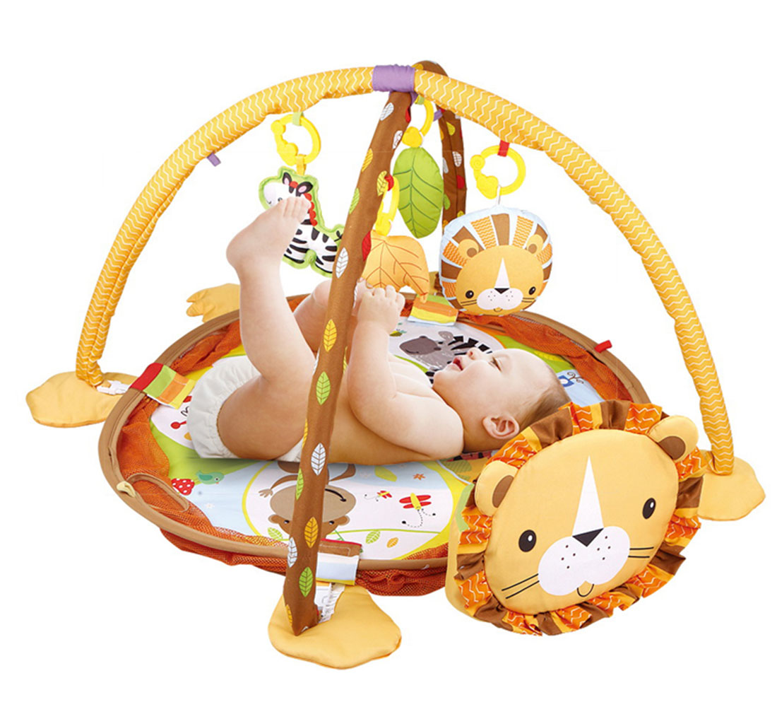 Este gimnasio con alfombra circualar cuenta con juguetitos que cuelgan del arco del gimnasio y que pueden cambiar de lugar, lo alientan a agarrar y golpear. Puedes bajar la parte circular para que juegue acostado y/o sentado. Puedes llevar la diversión musical a donde quieras que vayas con el bebe!